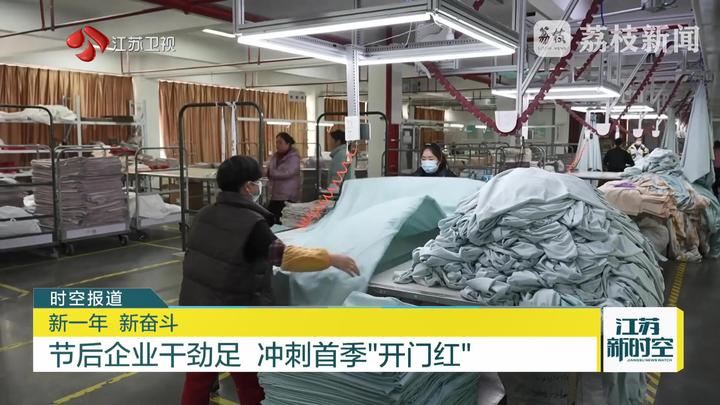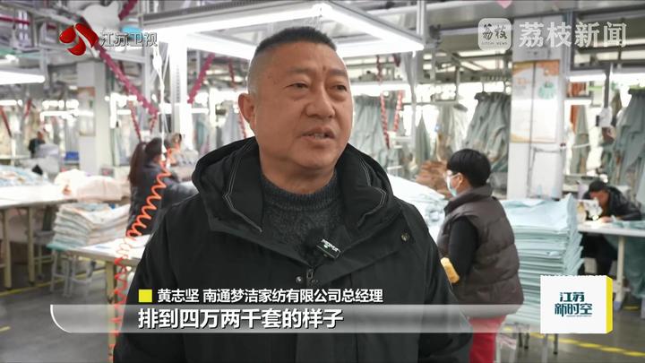 南通梦洁家纺有限公司总经理黄志坚说:“到2月份的订单,床上四件套订单已经排到四万两千套的样子,被芯类订单排到三万五千套的样子。”