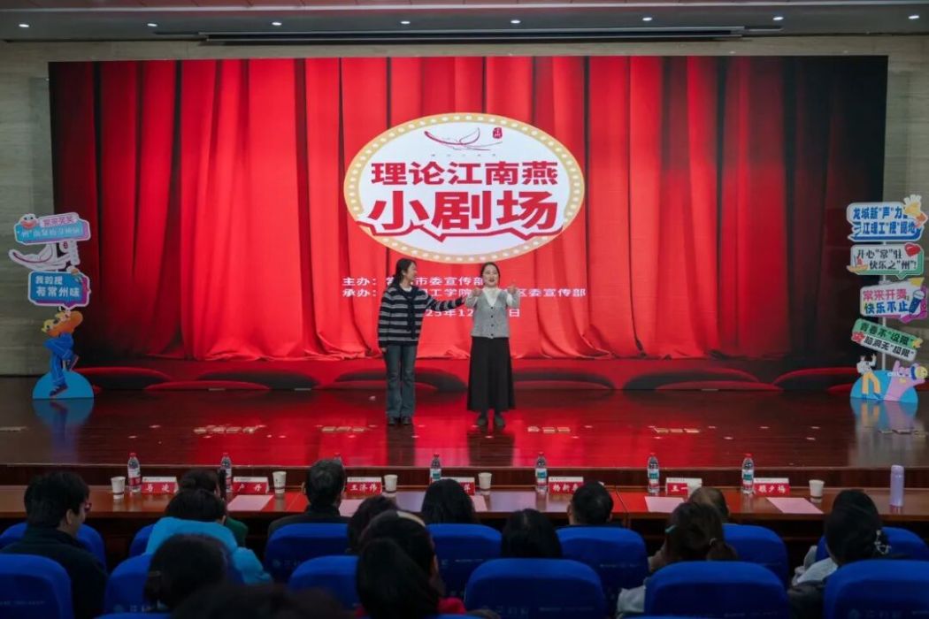 近日,“理论江南燕”小剧场开放麦全市巡演武进区牛塘镇专场活动走进江苏理工学院,以群众喜爱、年轻人追捧的多元形式,生动宣讲党的二十届四中全会精神,为师生们奉献了一场既富有思想深度、又洋溢青春活力的“理论大餐”。