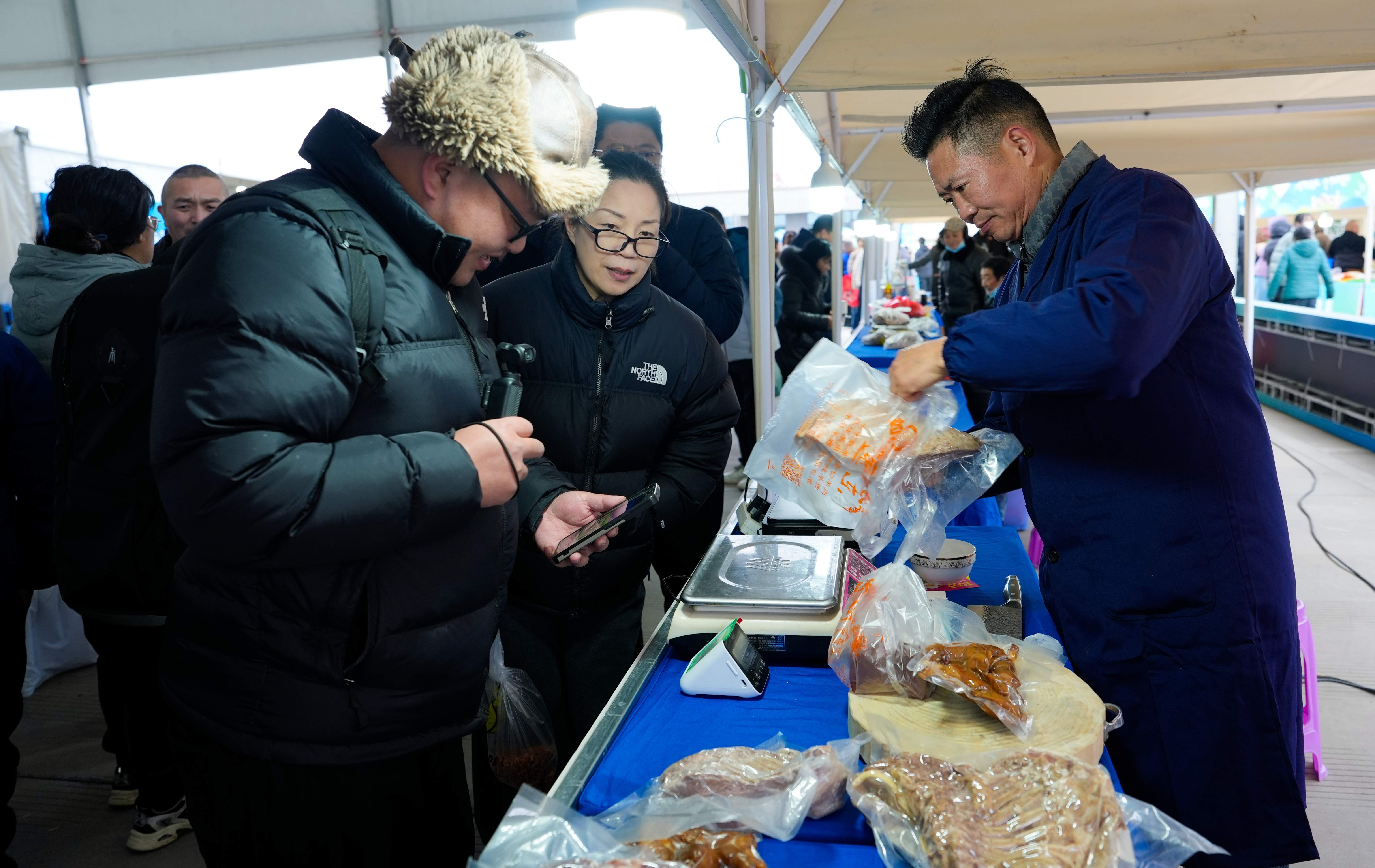 活动现场,羊肉美食摊位整齐排列,从熟制的白切羊肉、羊肉串,到鲜货羊肚、羊血等一应俱全,吸引了众多市民驻足采购。“半小时就卖出了25公斤白切羊肉,这两天慕名而来的人特别多!”康氏羊肉摊主康师傅一边麻利地给羊肉称重打包,一边笑着介绍自家羊肉的特色,“我们家的羊肉用传统方法炖煮,不腥不膻,吃的就是一口‘鲜’香本味。”
