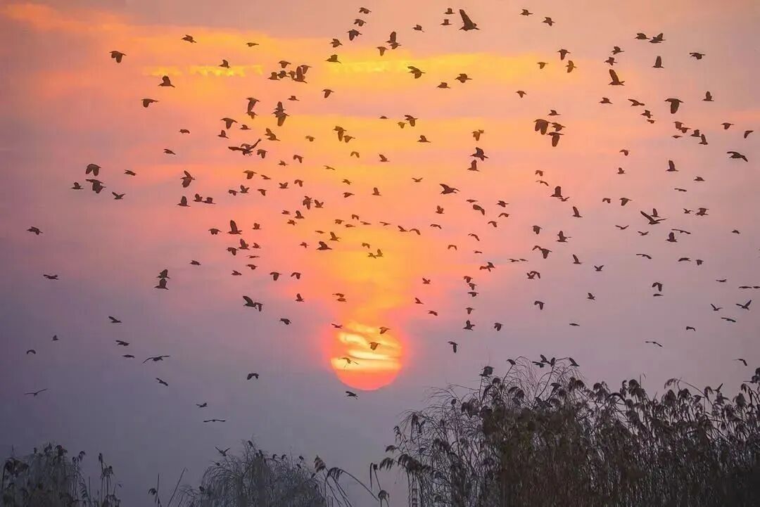 候鸟如潮涌入天穹