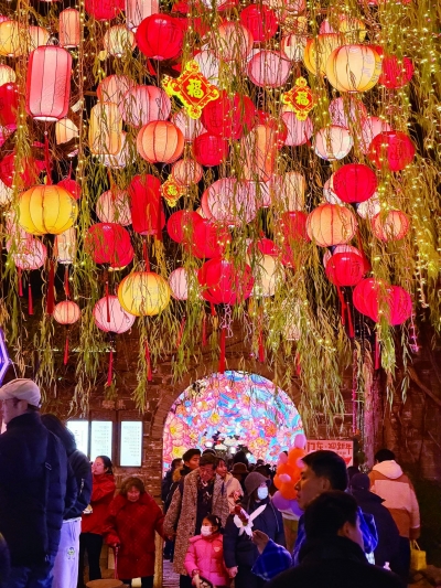 以每年颇受关注的城墙下生肖主灯和三条营的“网红打卡区”灯组为例,门东的运营,遵循着一种“年度创作”的长期主义。“在灯彩的设计布置上,我们保持着对在地文脉的尊重与创造性转化。”刘扬说,每年三、四月灯会撤展后,团队便立即开始复盘公众反馈;五月,基于各类调研的次年灯组设计已然启动。每年都有“出圈”灯彩的核心秘诀在于“将老百姓喜爱的元素融入街巷的肌理”。