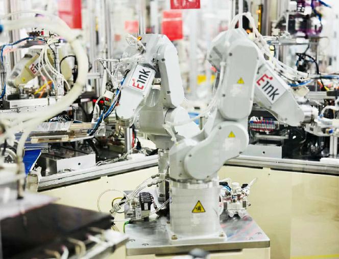 同样的智能化场景,也出现在晶澳(扬州)太阳能科技有限公司车间内。只见一辆辆小车自动来往输送物料,一台台机器人挥动手臂加工产品,一块块显示面板上不断刷新生产数据……彰显着一座现代化工厂的智能化水平。