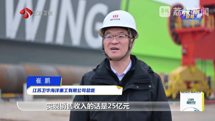 江苏卫华海洋重工有限公司总裁崔鹏说:“全国的港口我们基本看完了,最终落户到南通。第一觉得这里的供应链、产业工人,还有出海的自然条件是最好的,2025年我们实现销售收入25亿元,同比2024年整体翻了一番还要多一点,目前在手订单达13亿元。”