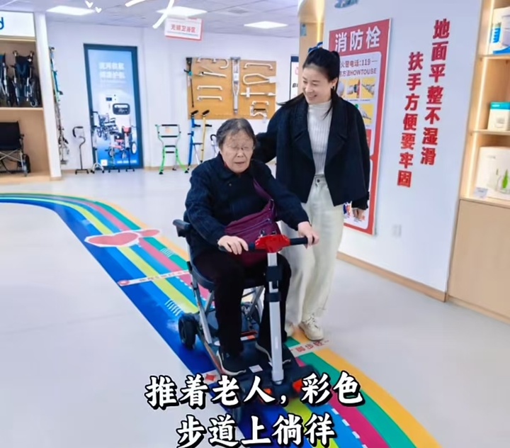 走进姑苏区体验中心,科技区、生活体验区、无障碍卫浴区等六大功能板块,完整还原了老年人从客厅休憩、卧室起居到厨房备餐、卫浴洗漱的日常动线。老人可以试坐电动轮椅,感受弹性地板的防摔性能,体验L形扶手的稳固支撑。“线上难销”“看得多、买得少”,是适老化产品销售的困局,如今,这种“真实场景”的搭建,成为破题关键。