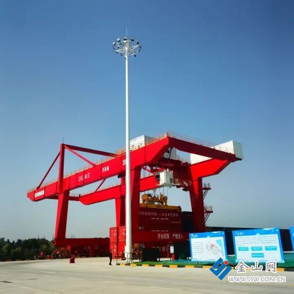 龙门吊将重30多吨的集装箱缓缓提起、移动,轻轻放上“腾运078号”货轮……随着丹阳港的正式运营,江苏省镇江市无内河集装箱运输的历史结束了,这也成为镇江市运输结构“减重向轻”的生动体现。