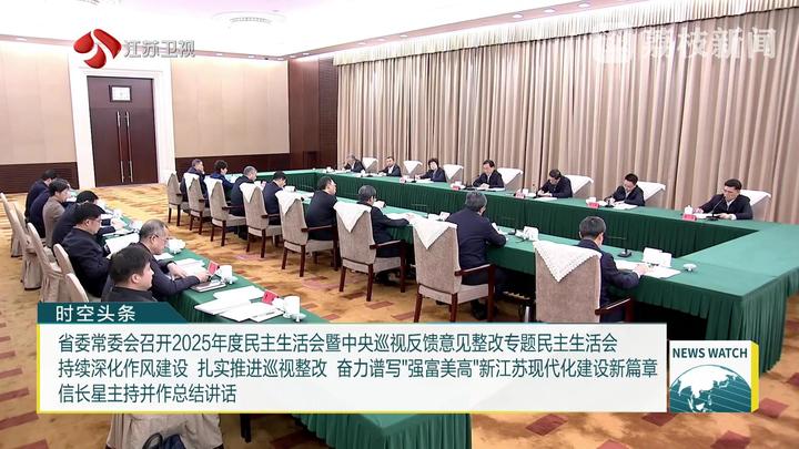 按照党中央部署要求,1月29日,省委常委会用一整天时间召开2025年度民主生活会暨中央巡视反馈意见整改专题民主生活会,以中央政治局民主生活会为标杆,深入学习贯彻习近平新时代中国特色社会主义思想,全面贯彻落实党的二十届四中全会精神和习近平总书记对江苏工作重要讲话精神,围绕锲而不舍落实中央八项规定精神、从严从实抓好中央巡视反馈意见整改,进行检视剖析、党性分析,以优良作风凝心聚力、真抓实干,奋力谱写“强富美高”新江苏现代化建设新篇章。