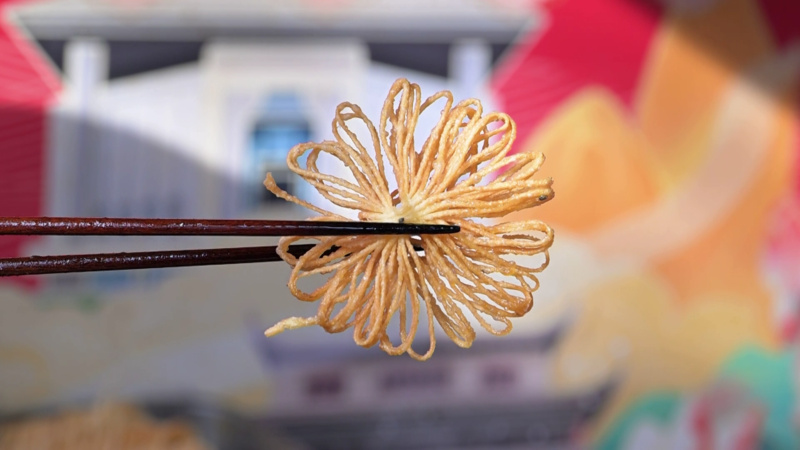 “和面这道工序最为关键。”尽管店里已有六个帮手,可为了保证这一口地道的淮安味儿,岳云飞总是坚持亲自上手。醒面、复面、开条、抹条、盘条16道工序,指法、力度、油温里,样样皆是学问。下午两点半,店前的青石板街上人潮逐渐涌动,这时岳云飞才刚刚和店员们才吃上午饭。“一大早准备好的面必须马不停蹄炸制出锅,这样才能保证风味。”儿子岳健锋解释道。