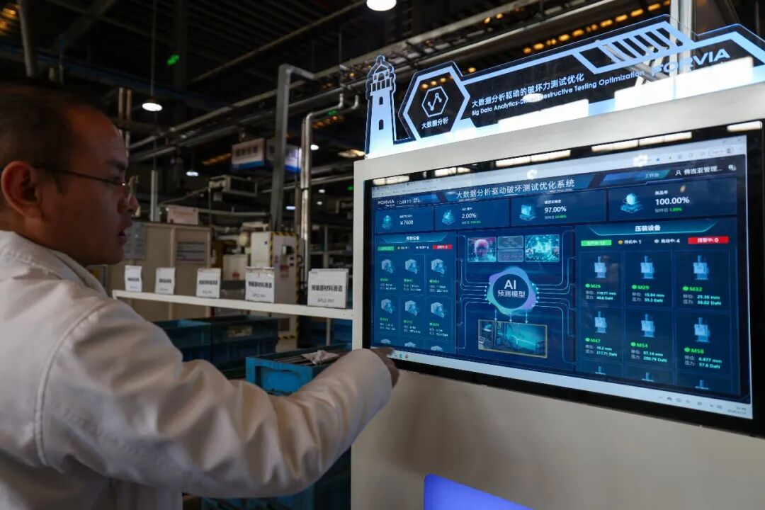 走进佛吉亚(盐城)汽车部件系统有限公司,智能化生产场景随处可见。AI视觉检测系统如同“智慧眼睛与灵巧手臂”,精准完成滑轨缺陷检测与自动补漆作业;通过人工智能调试系统,平均换模时间从33分钟压缩至15分钟;基于深度神经网络的EOL噪声检测系统,将不良品流出率从10%降至3%。
