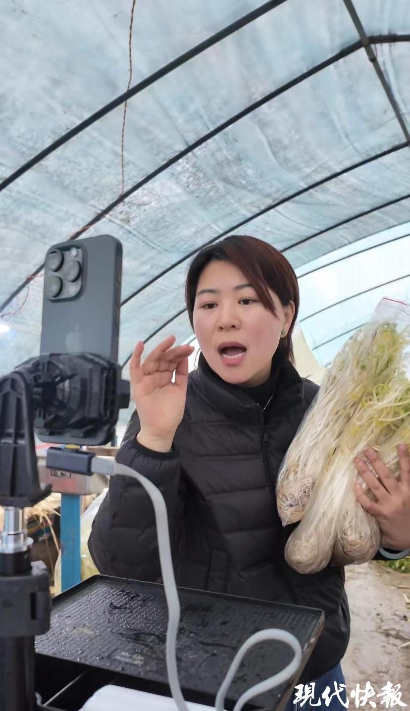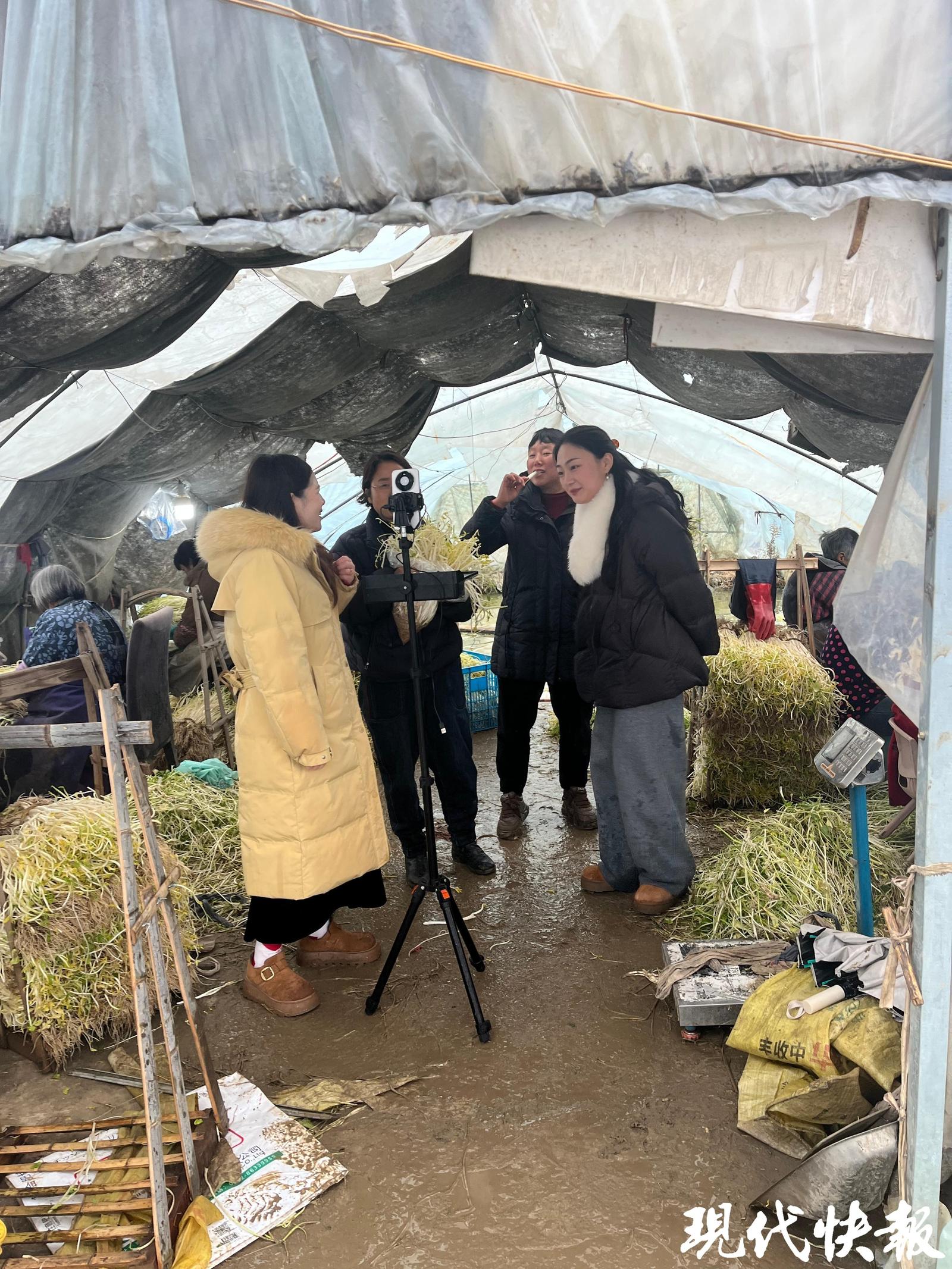 这是1月30日下午1时40分左右,现代快报记者在溧阳大林村看到的一幕。同期,共有3场公益助农直播陆续开播,为了全面呈现白芹的生长环境和采挖过程,这3场直播分别被安排在不同的场景里。作为这场活动的“总设计师”,乡村运营官费婧在直播场地间来回穿梭,这个1988年出生的姑娘熟练地指导、把控直播的进度,同时监控着随时可能发生的特殊情况。