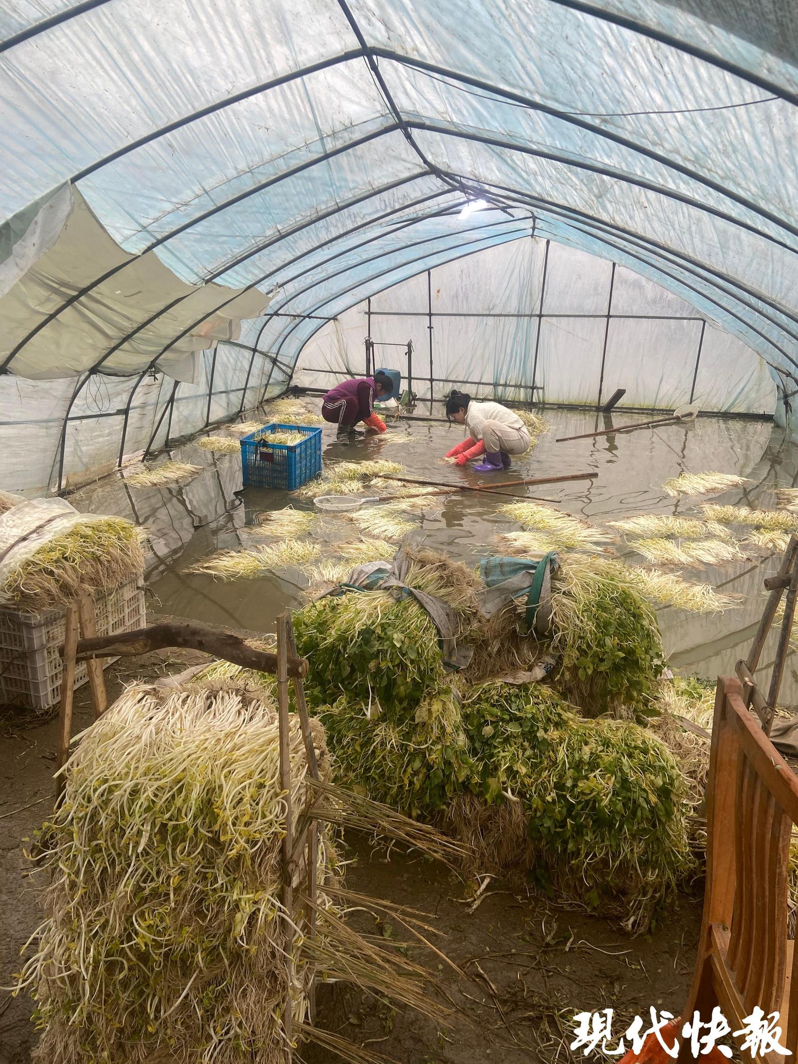 “这是土培的溧阳白芹,口感更鲜美,今天给到你们的价格也很划算……”在溧阳市大林村一间塑料大棚内,两位女主播正在镜头前卖力地推介着溧阳白芹,身后,菜农们正在有序地清洗、分拣、包装白芹。