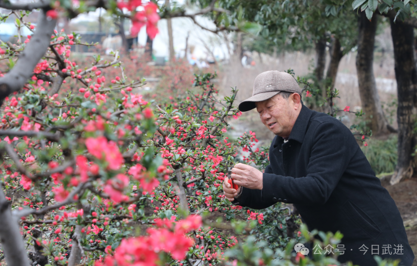 “薛书记,这几盆贴梗海棠我特意挑的,花苞都露红了,一个礼拜后满红,正好当成年宵花,送给咱们村那几位队长!”临近年关,常州牛塘镇漕溪村的海棠园里暖意融融,园主张奎方抱着造型雅致的海棠盆栽,语气诚恳地对村党总支书记薛玉明说道。“奎方,你这份心意太实在了,队长们要是收到这份‘年礼’,心里肯定暖暖的!”一句简单的话语,藏着村民对基层工作者的认可,也揭开了一段海棠与乡村共生、实干与温情相融的佳话。