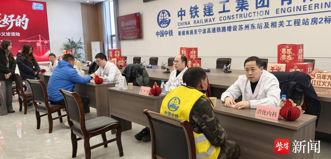 “苏州东站建设时间紧、任务重、要求高,为了全力保障工程节点,这个春节不停工,我们约有350名工人留守作业,占总人数近一半。”中铁建工集团苏州东站项目部项目书记王鉴接受记者采访时表示:“我们在抓好安全生产的同时,也希望通过这次义诊,把健康送到工地,让大家温暖过年。”