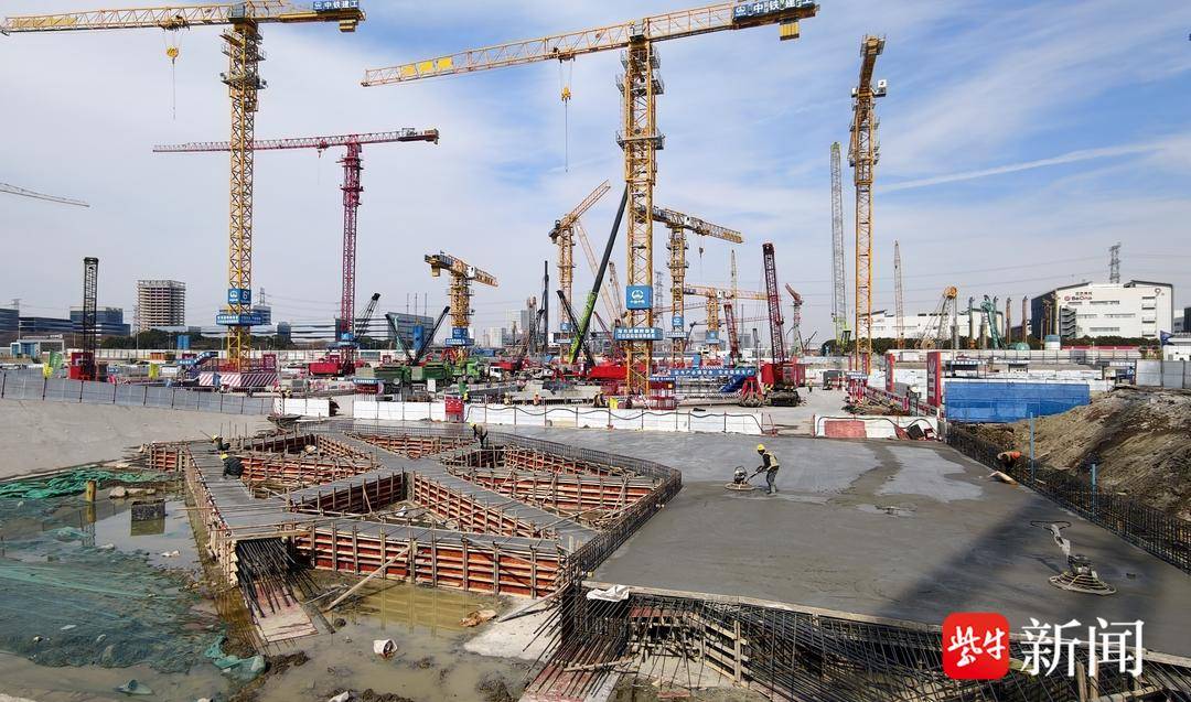 扬子晚报/紫牛新闻记者走进苏州东站项目2标段的建设工地看到,现场塔吊林立、机械轰鸣,钢筋与模板层层叠起,数辆工程车辆往来穿梭,工人们顶着寒风紧张作业,现场一派繁忙有序的建设景象。