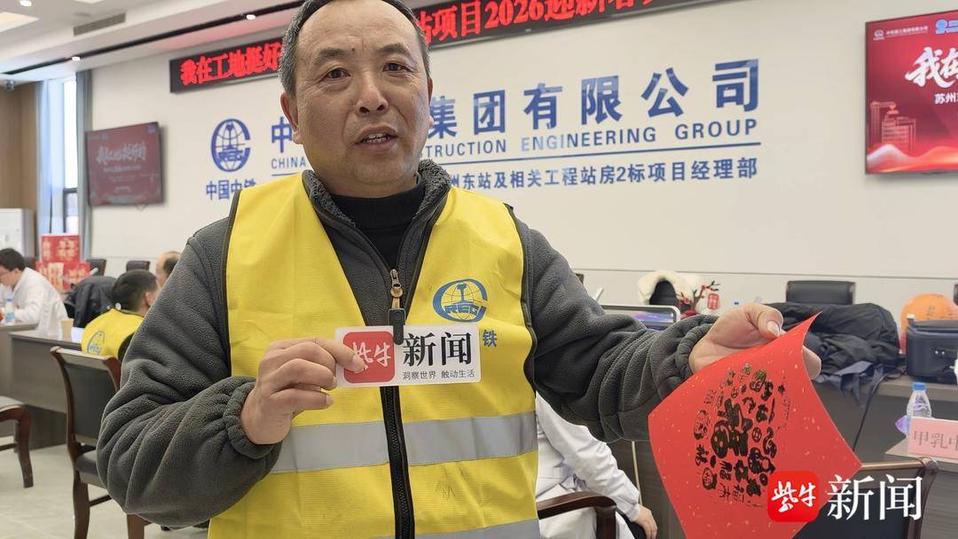 来自安徽的一线工人赵智告诉记者,虽然春节不能回老家和家人团聚,但项目部会组织吃年夜饭、举办各种活动。“还有今天这样的义诊,大家在一起体检、聊聊健康,感觉很温馨。”曾参与苏州生物医药产业园等项目建设的他于2025年8月转入苏州东站工地,如今最大的心愿就是苏州东站早日建成。“以后带着孩子来坐高铁,我可以骄傲地告诉他:这是爸爸参与建设的!”