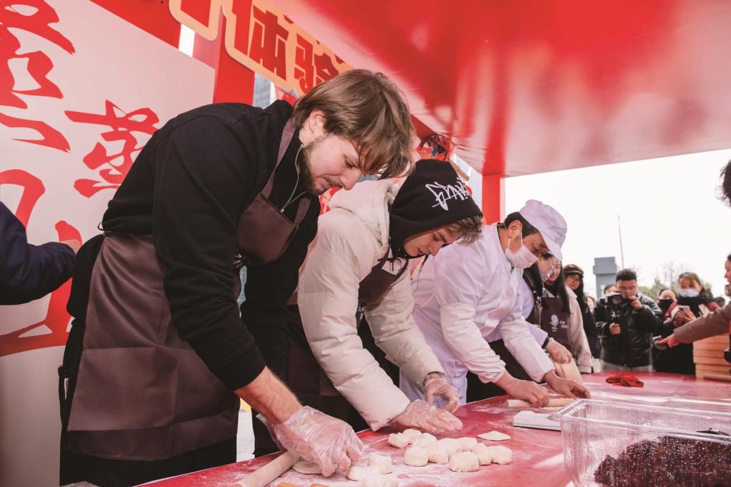 包子大会现场,刚刚出笼的包子热腾腾、白胖胖,让人垂涎欲滴。市民代表为刚出炉的包子点上朱红,大家互道鸿运当头、吉祥圆满,阵阵诱人的香气飘散开来。市民和外国友人还一起在面点师的指导下亲自体验制作“福字包子”,好吃又好玩。