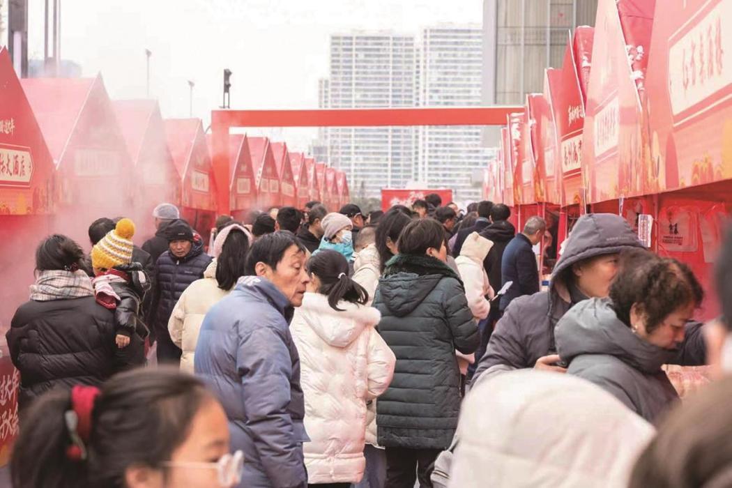 虽然天气寒冷,但大家购买热情高涨。迎桂馒头、银丝面馆、红方桌酒楼、三顺德、薛家萝卜干等老字号及网红品牌带来了各自的招牌,现场制作售卖,百“味”争鸣。“从开摊到现在,几乎没停过手,大概卖了两三百个了。”非遗“东坡包”传承人林瑞梅说。泰州品牌海棠春带来了笋丁包、萝卜丝包等品类。“我们一大早就出发了,为了把最地道的泰州风味带来常州,”负责人一边忙着招待顾客,一边感慨,“我们的包子很受欢迎,这趟来得值!”