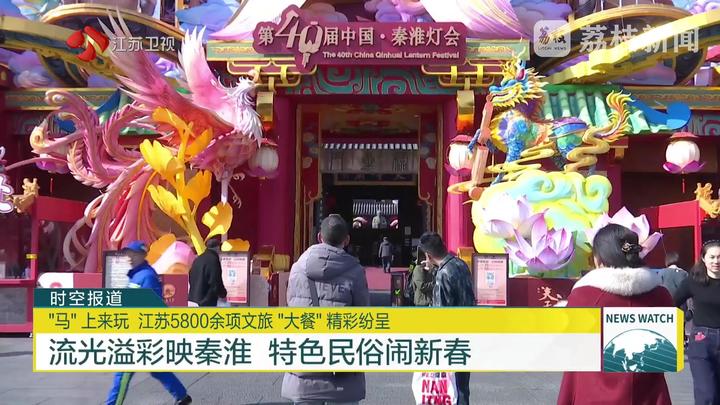 荔枝新闻中心记者郑凌说:“在南京夫子庙,虽然还没到除夕,但这里已经是人头攒动,年味儿特别浓。我身后的大成殿门口,巨型马年花灯造型精美,寓意吉祥,吸引了无数游客驻足拍照。”