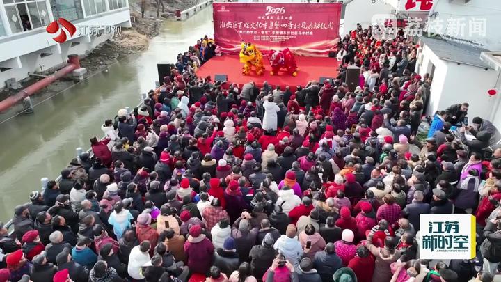在淮安市洪泽区龟山村,充满渔家特色的长桌宴热闹开席,村民与四方游客相邻而坐,共品当地特色佳肴,大伙还参与滚铁环、投壶等传统游戏,重温旧时童趣,触目所及都是最温暖的人间烟火气。走进苏州吴江南厍古村,沿着蜿蜒河道,鱼灯竹筏、财神送福、歌舞演出轮番登场,让人目不暇接。