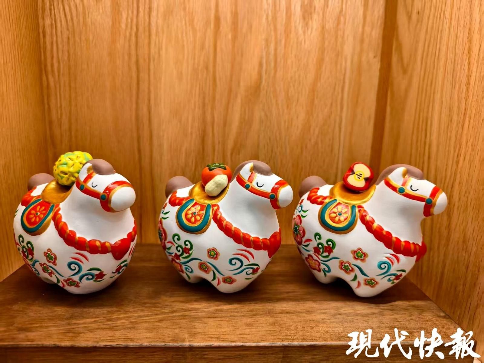 “确实很可爱!”现代快报记者第一眼看到泥人“马上平安”便爱上了:马的造型饱满圆润,看着很有福气;而马背上的苹果,谐音“马上平安”,寓意又好。而这款“马上平安”的设计者,是泥人厂的00后设计师史一凡。