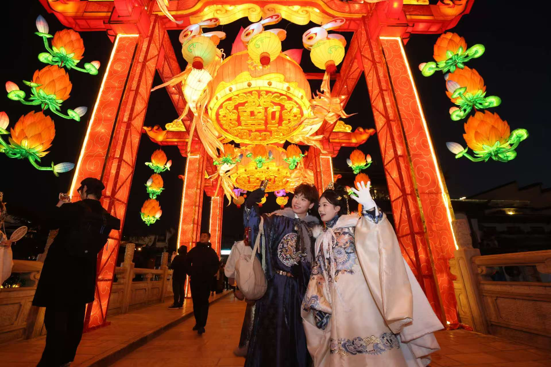 去夫子庙看花灯,去梅花山赏春梅,去玄武湖看年俗表演,到红山森林动物园打卡新春游园会……假期第一天,南京多个重点景区人头攒动,八方游客纷纷来宁过大年,到处洋溢着喜庆欢乐的气氛。
