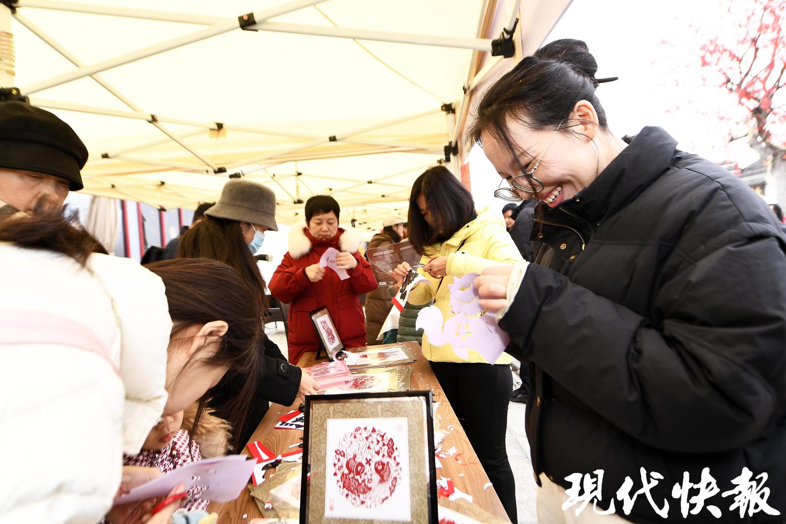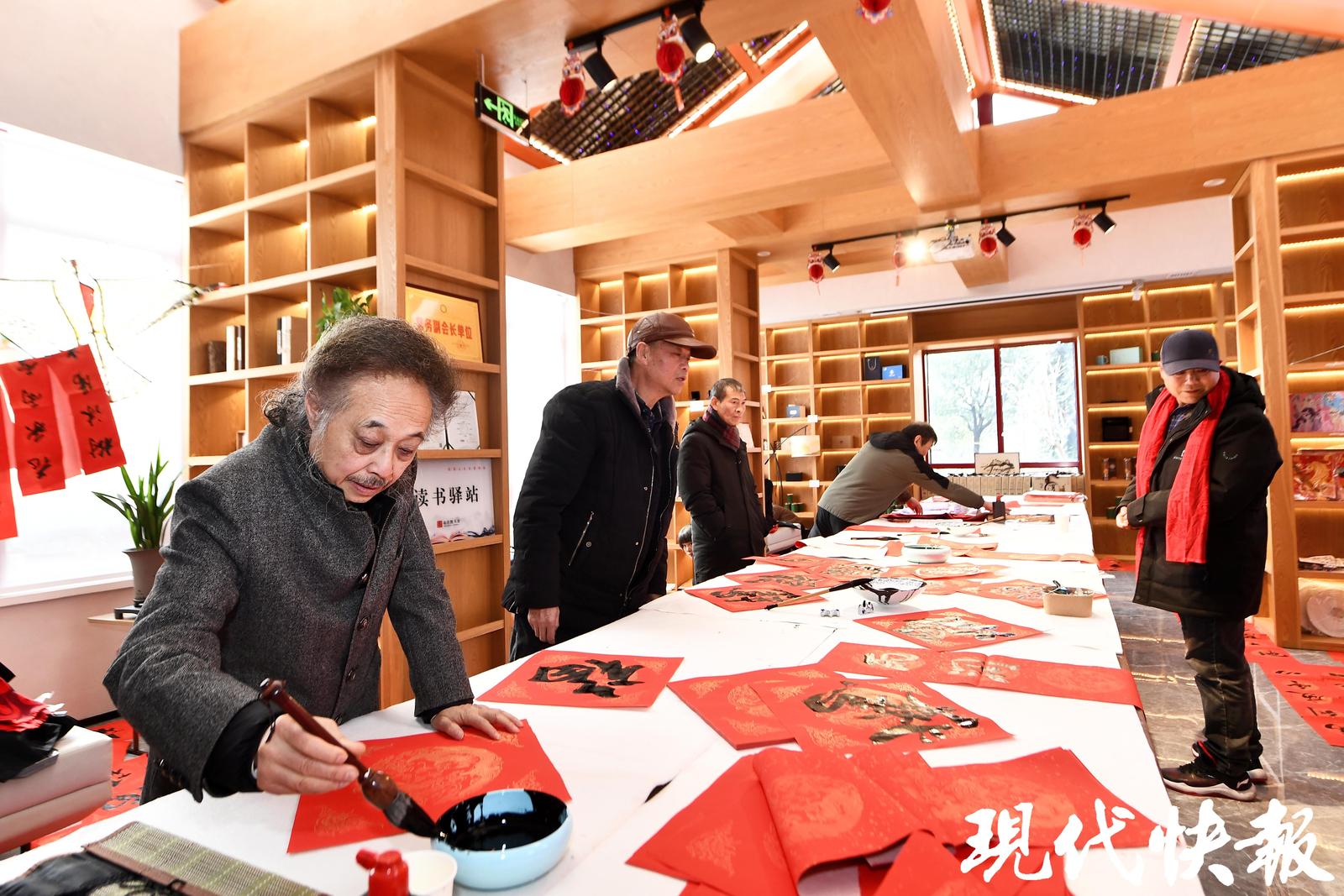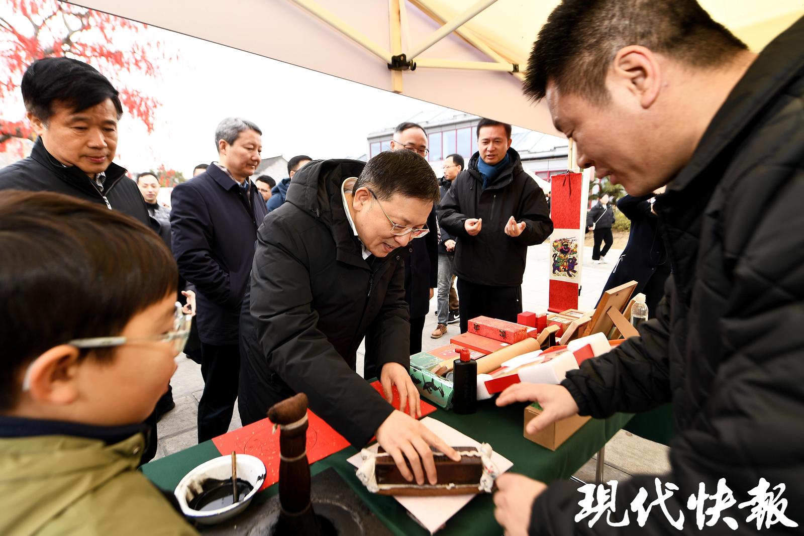 村宴,不仅是味觉的盛宴,更是一场民俗的雅集。2月1日的慢城村宴,是江苏省文学艺术界联合会主办的“迎春花开马上来福”民艺过大年活动的一部分,集结了苏州桃花坞年画、南京剪纸、扬州漆器、常州梳篦、宜兴紫砂等全省各地民俗非遗,奉上一场全省联动的民间文艺盛宴。摄影、书画艺术家们为50户村民拍摄全家福,还为村民与游客送上装满春联、福字、年灯的新春大礼包。