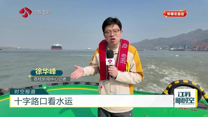 荔枝新闻中心记者徐华峰说:“12.5米深水航道释放的‘黄金效能’,在过去一年,随着我身旁的一艘艘千吨驳船穿梭江河,持续迸发活力。接下来,记者将登上一艘货船,当一回跑船人,沿长江进苏南运河,去感受内河航运的新变化。”