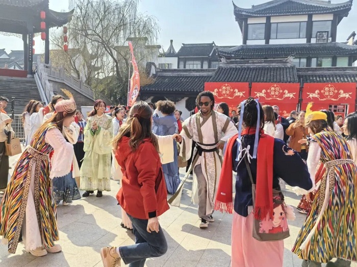 近日,无锡梅里古镇中华德城广场张灯结彩、年味浓浓,“2026年外籍友人新吴过大年”活动热闹启幕。40余位在无锡工作、学习的外籍友人齐聚吴文化发源地,穿汉服、做糖葫芦、逛新春市集,沉浸式体验吴地春节的独特魅力。