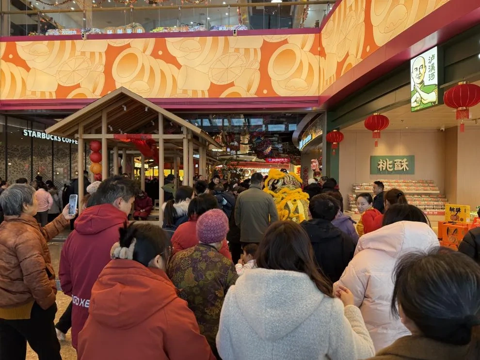多元场景同步升温,让文旅消费更具活力与温度。迪诺水镇依托东经120°独特人文印记,演绎“线”定年味,正月初三暮色轻垂,万盏花灯与五大灯组点亮夜空,灯谜喜乐会与“千灯会”市集同步启幕,猜谜品食间尽显年俗意趣,餐饮消费热度高涨,就连来自苏州的游客一家,也循烟火而来,漫步淹城体悟历史、畅游恐龙园感知童趣。繁华商圈中,人文与商业双向赋能,《浪浪山小妖怪》快闪与常宝特展,吸引市民游人打卡,购物、餐饮、娱乐全线升温;影城人气爆棚,全家同行观影的身影随处可见,单日观影人次创新高,带动商圈关联消费同步增长。
