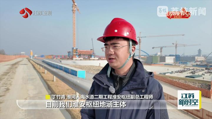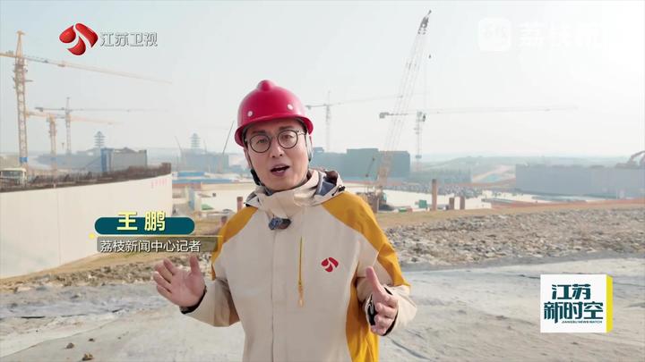 荔枝新闻中心记者王鹏说:“我现在是在淮河入海水道二期工程淮安枢纽的建设现场,枢纽建成之后将成为世界上最大的水上立交。一批新材料、新设备、新技术、新工艺也应用到了这项世纪工程的建设和管理当中,我们一起去探访一番。”
