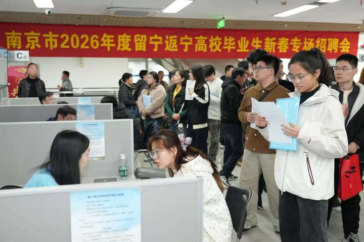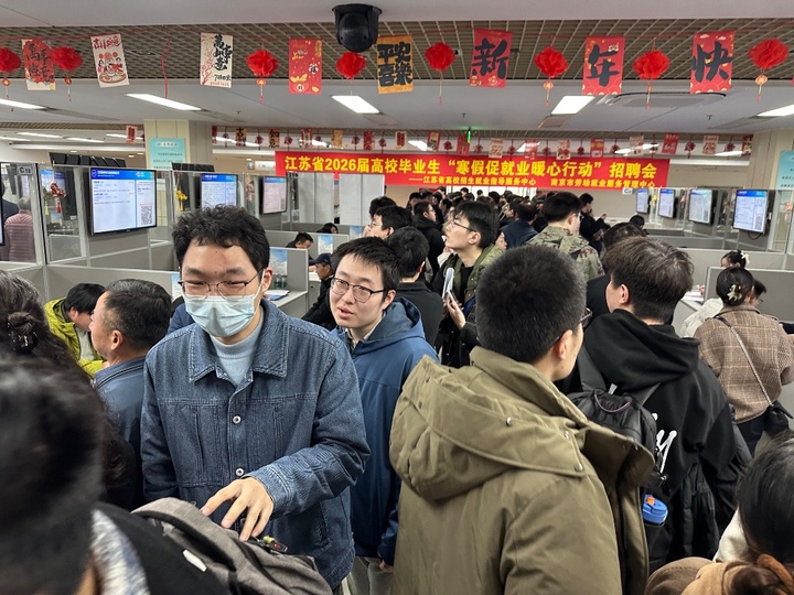 交汇点讯2月22日(正月初六)下午,南京新春首场人才招聘会——2026年度“春风行动”留宁返宁高校毕业生专场招聘活动火爆开场。2000个岗位吸引了1200多名高校毕业生进场求职,收到简历近2500份,让主办方和招聘企业连呼“没想到”。