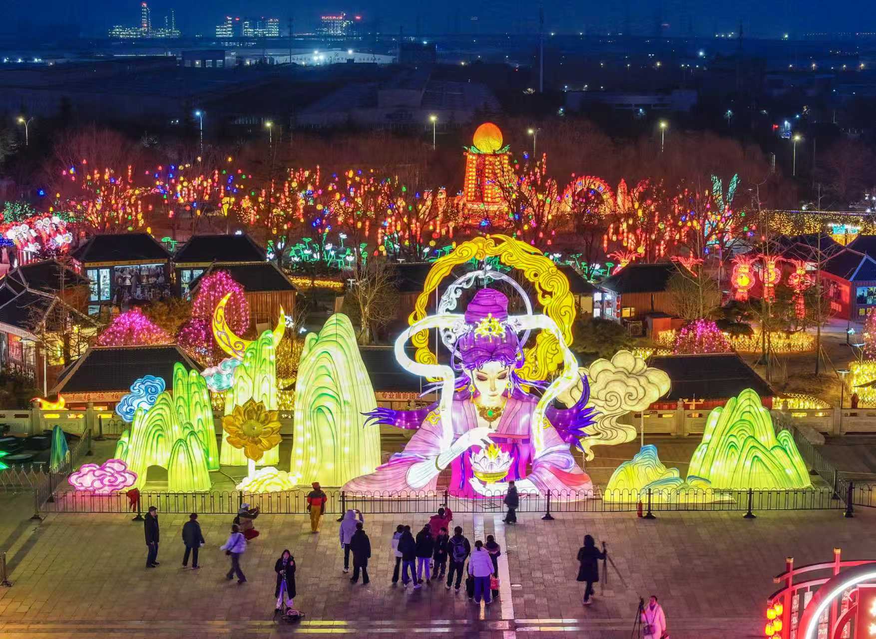 除此之外,徐州以灯为媒,铺展出一幅古今交融的新春图景。云龙湖水上世界依托自贡国家级非遗灯展技艺,打造“深海奇境”大型沉浸式湖心光影灯会;徐州经开区蟠桃山景区8万平方米灯海,呈现跨越古今的光影盛宴;文庙街区985盏传统彩灯吸引大批游客驻足拍照;在彭城七里文脉街区,新春奇妙会开锣,非遗手工与老字号集结,民乐表演与非遗技艺轮番登场;徐州园博园每天近60场非遗演出精彩上演……