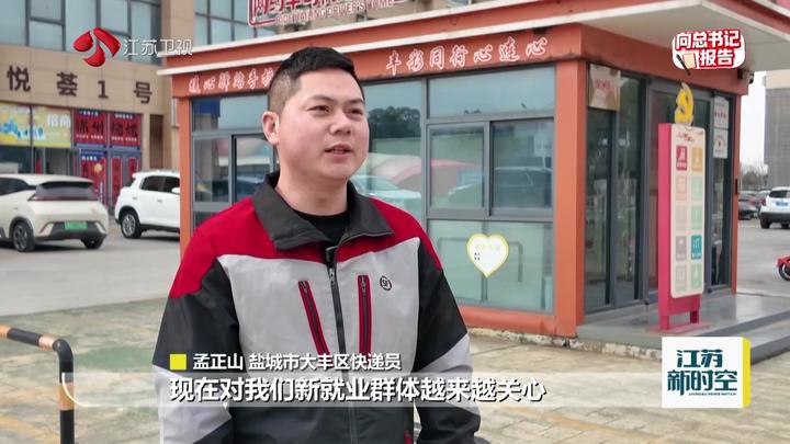 盐城市大丰区快递员孟正山说:“现在对我们新就业群体越来越关心、越来越贴心了。街上到处都有暖心驿站,特别方便。劳动权益也有专人帮忙维护……这些关心都是实实在在的。”
