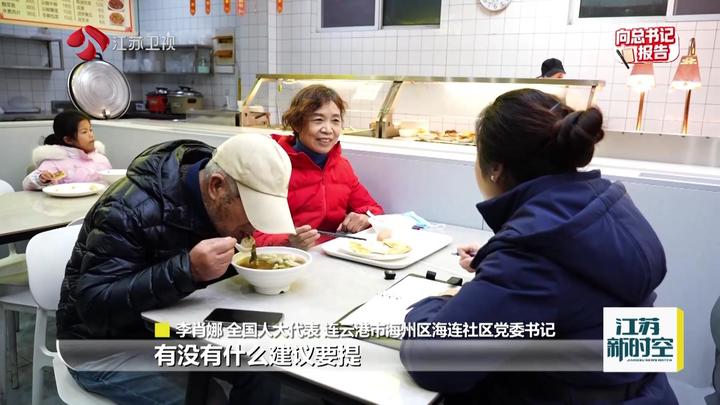 全国人大代表、连云港市海州区海连社区党委书记李肖娜问道:“孙姨,对于吃饭的食堂,有没有什么建议要提出?”