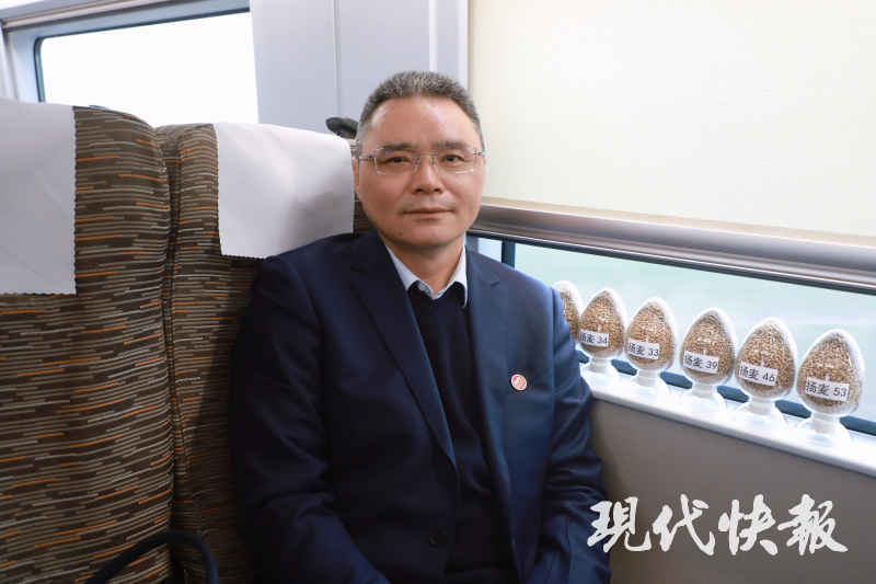 3月3日,出席十四届全国人大四次会议的住苏全国人大代表乘坐高铁前往北京。飞驰的高铁上,全国人大代表、江苏里下河地区农业科学研究所研究员、生物育种钟山实验室小麦领域首席高德荣向记者亮出了他的特别行囊——6个装有不同小麦品种的玻璃罐子,这里有耐迟播、抗倒伏的“扬麦25”,还有集高抗病、高品质、高产量于一体的“扬麦39”……高德荣如数家珍。