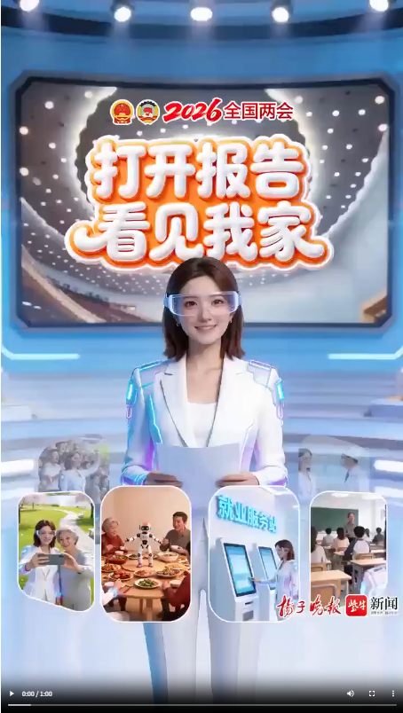 3月5日,十四届全国人大四次会议在北京开幕,国务院总理李强作政府工作报告。每年的政府工作报告,不仅擘画国家发展的宏大叙事,也始终关注百姓身边的点滴冷暖。字里行间,既有对时代大势的深刻洞察与战略部署,也饱含着对万家灯火的温情关怀。扬子晚报/紫牛新闻推出AI创意视频《打开报告看见我家》,请你与紫牛新闻数字人主播一同走进报告中那些“热气腾腾”的民生场景。在这里,“大家”的宏伟愿景与“小家”的温暖细节,将交织成你我心中那份最踏实的幸福。