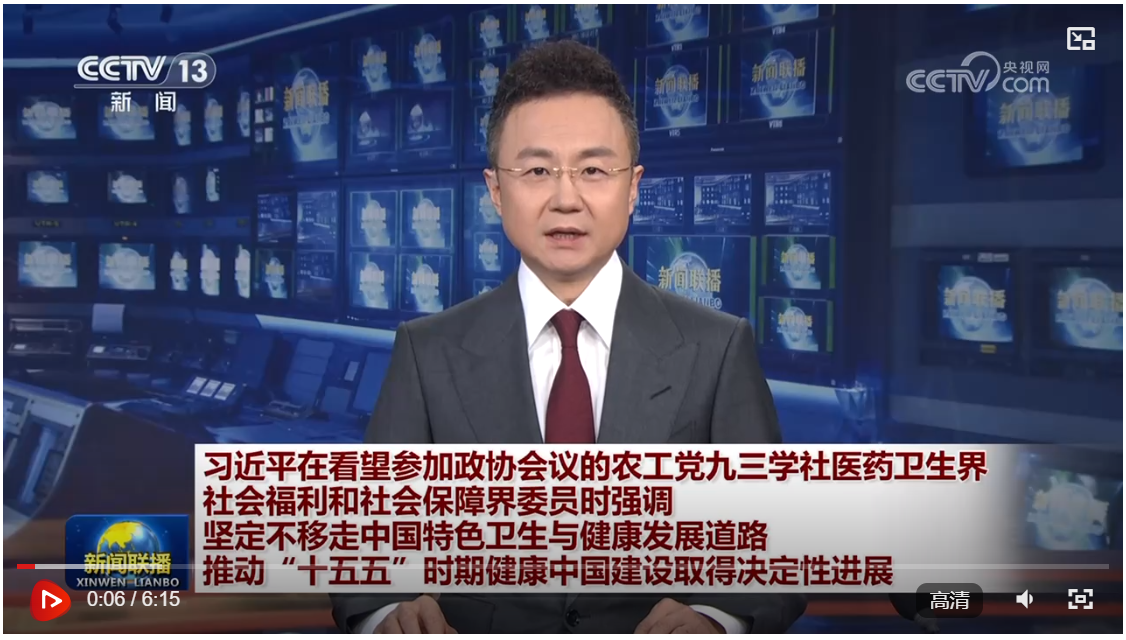 在听取大家发言后,习近平发表重要讲话。他表示,很高兴同大家一起讨论,听取意见建议。他代表中共中央,向在座各位委员,并向农工党、九三学社成员,向医药卫生界、社会福利和社会保障界人士,向广大政协委员,致以诚挚问候。