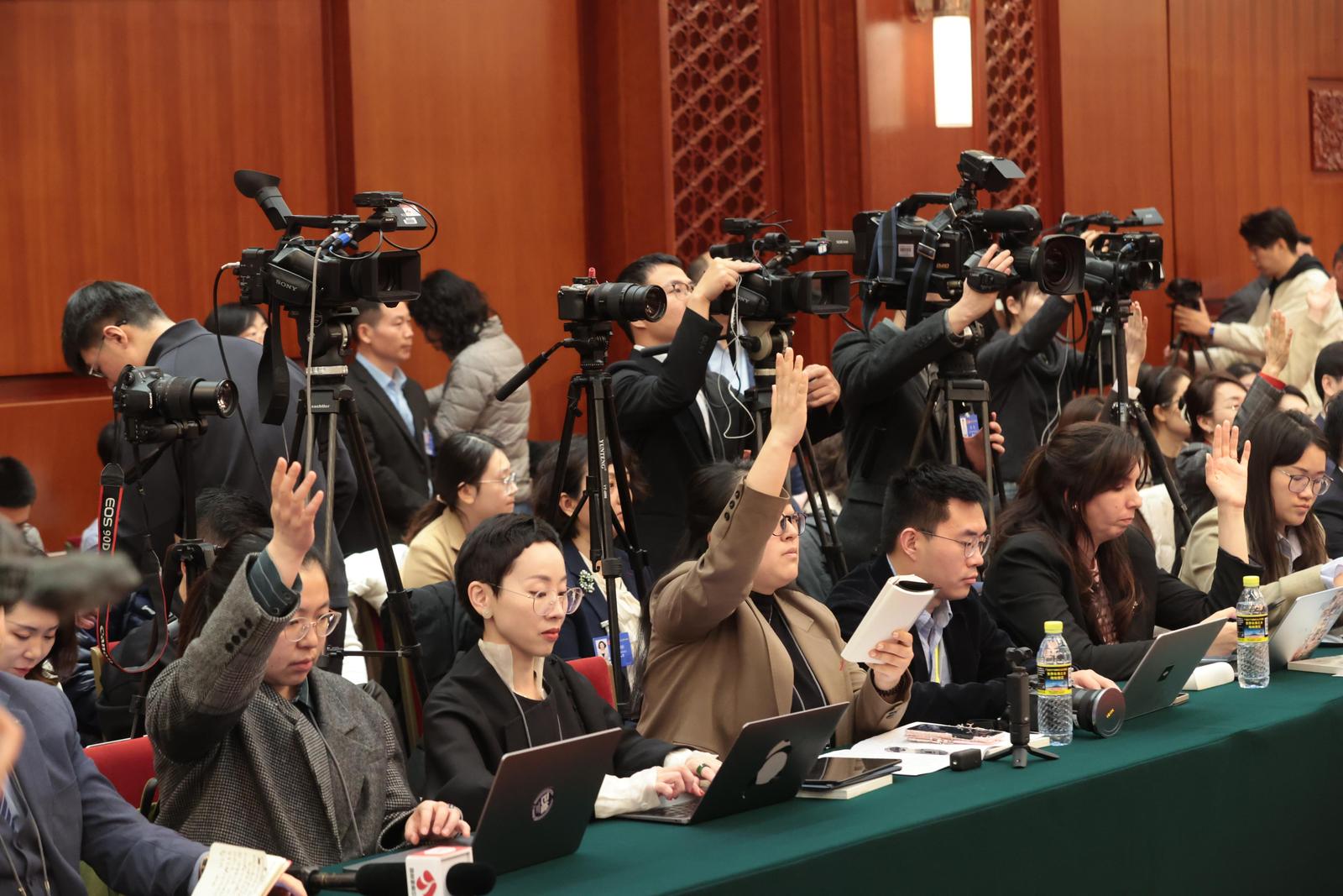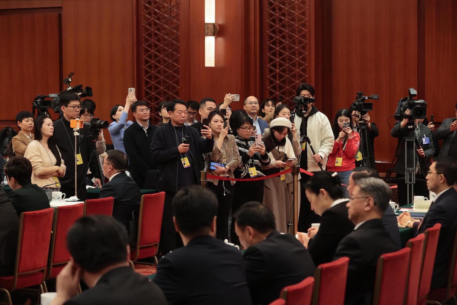 不到8点半,许多媒体记者便来到人民大会堂东大厅。很快,记者席就被抢占一空,架满了“长枪短炮”。记者们都关心哪些问题?巴西中国通讯社副社长严佳希望有机会实地探寻值得巴西借鉴的高质量发展路径与方向;中国高新技术产业导报记者张伟则把目光投向了江苏的创新发展赛道;电影频道节目中心记者温春林持续关注江苏影视产业的发展……