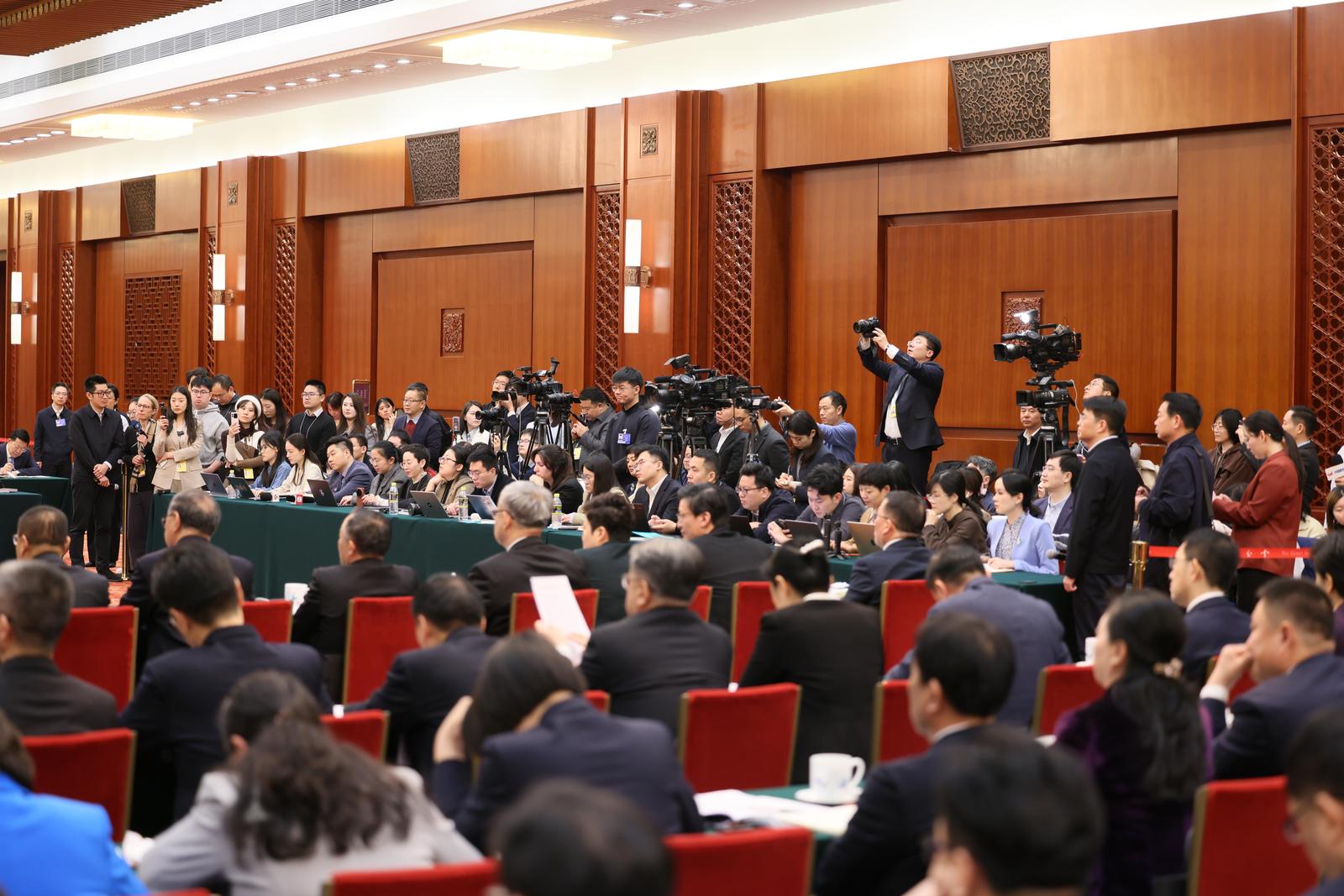 在集体采访环节,记者们争相举手,提问的关键词涉及经济大省挑大梁、长三角协同创新、苏超、海洋经济、人才培养、外贸、生态环保等内容。面对媒体关切,代表们直面问题,坦诚回应。