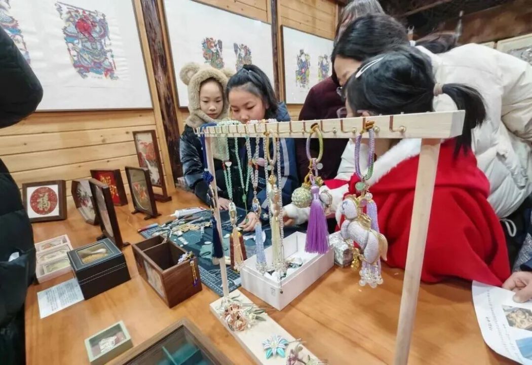 硬件更新搭好舞台,文化活力次第登台。下塘街的单银娣艺术研究院美学共享空间内,宋锦饰品雅集已成常设活动。主理人王星手把手指导学员裁剪、缝制——红金相间的宝相花纹宋锦裁作马身,取意唐代鞍马,足踏三枚古钱,寓意“马上成功”;龟背纹宋锦制成的葫芦耳饰谐音“福禄”,莲纹胸针裁切连绵脉络,寓意“生生不息”。数十位爱好者在穿针引线间,触摸“寸锦寸金”的宋锦底蕴。“第一次做,小马胖乎乎的,特别可爱。”有人当场将挂件系上包袋,有人把耳饰对着镜子比划。带孩子参与的家长说:“亲手制作,孩子能直观感受非遗的美与巧。”