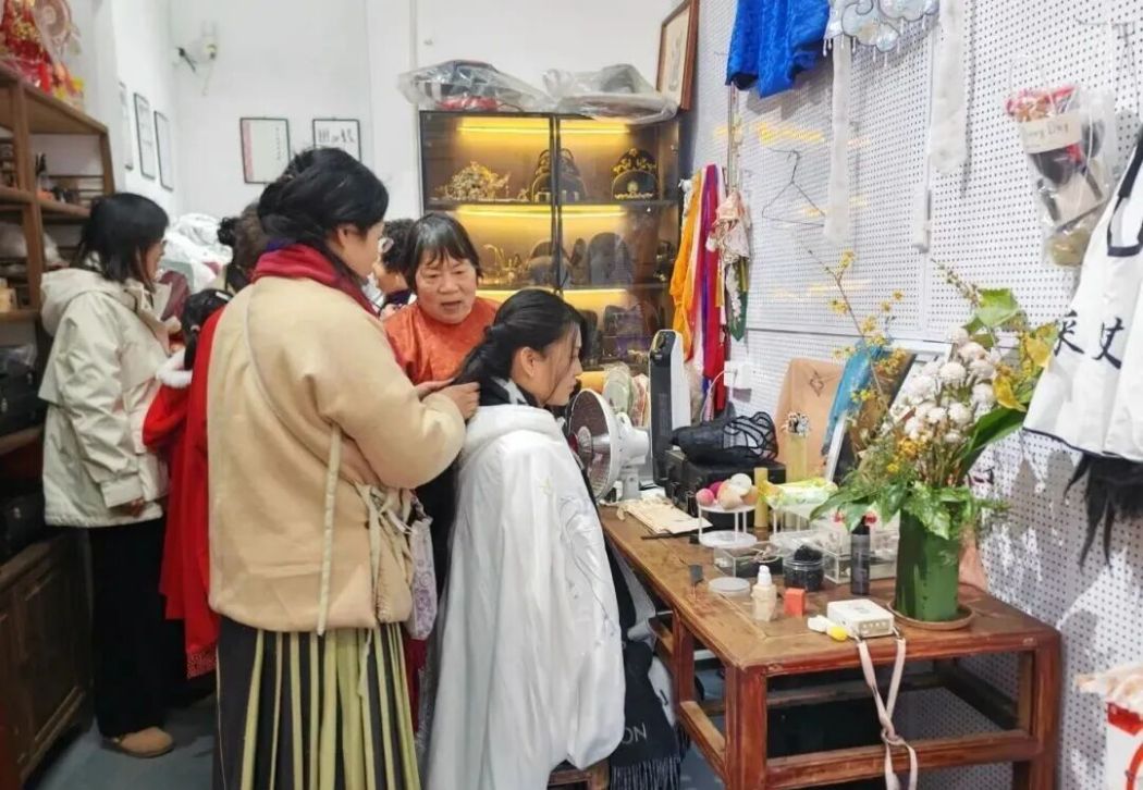 老街的更新,并非从零开始。早在改造之前,一些年轻主理人便已悄然入驻——90后夫妻张雨和岳阳盘下老屋,从各地淘来古董地板和老家具,将橘猫茶馆、屋顶咖啡、友谊餐厅等打造成兼具怀旧质感与时尚气息的休憩空间;采艾兮汉服文化服务中心利用柴房改造,既盘活闲置空间,也成为传统文化传播的窗口。这些由老房子生长出来的新业态,印证着老街自带的更新基础与潜在活力。