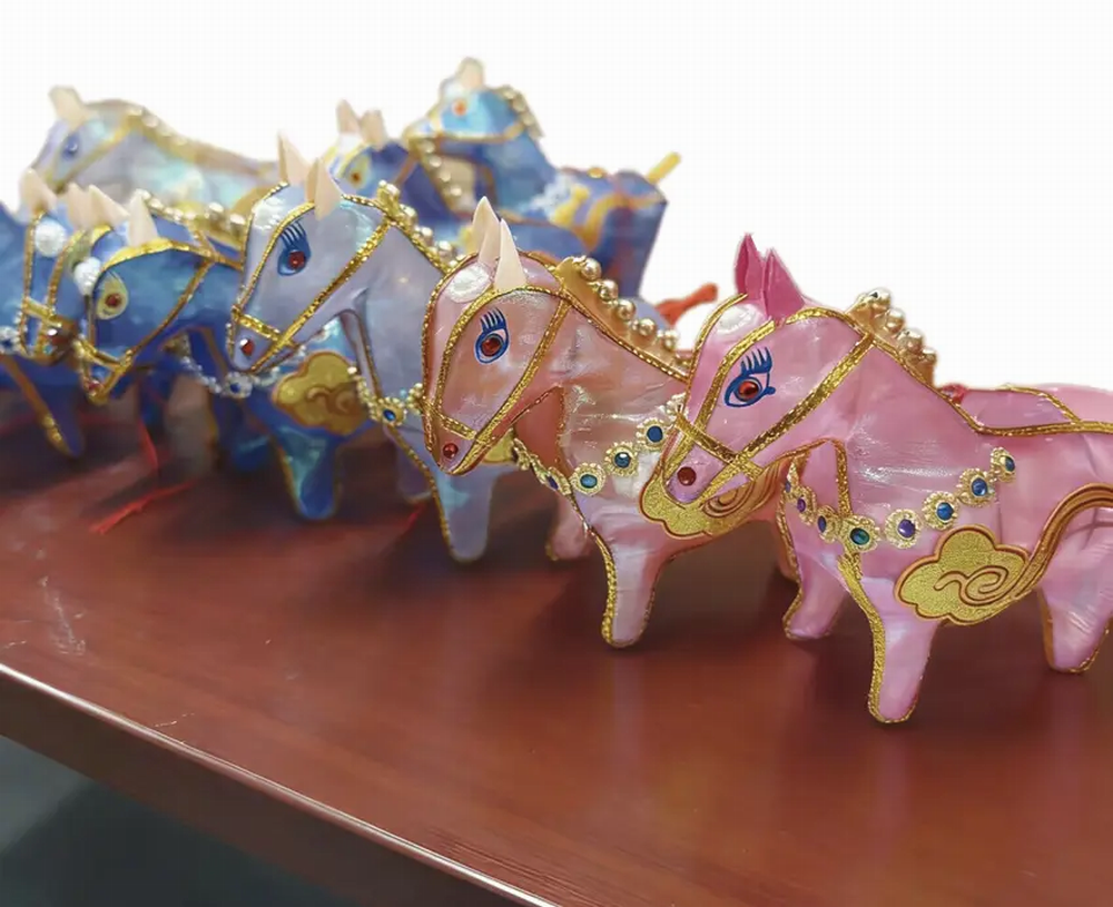 “画马难画骨,做马灯最难的是抓‘精气神’。”曹真荣拿起一盏昂首的马灯,指尖抚过灯身,“得把马的奔放劲儿捏出来,抬头、挺胸、四蹄腾空,一点不能软。”