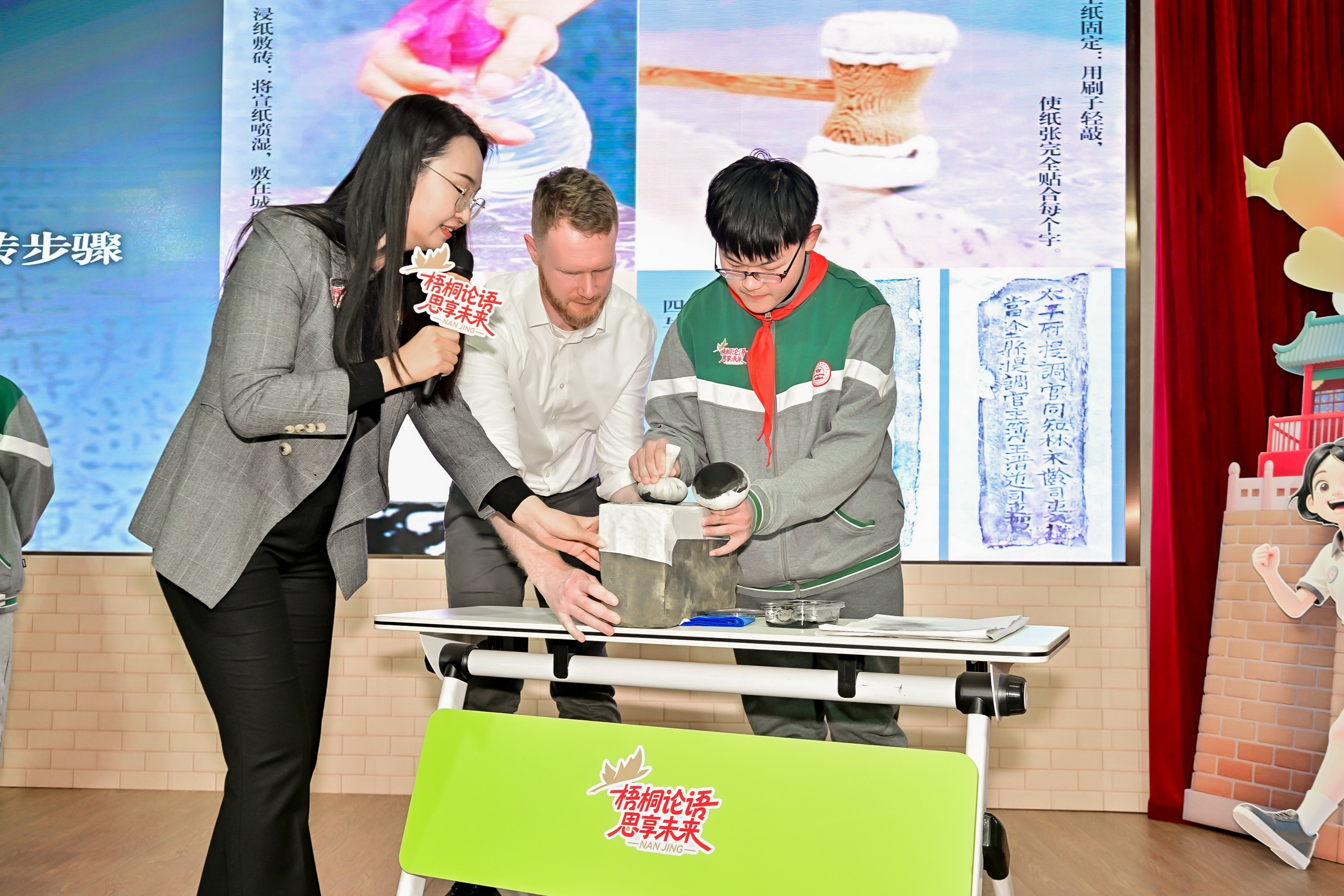 现场,南京城墙博物馆副馆长金连玉指导同学们如何进行砖文拓印,在动手实践中感受城墙文化魅力。
