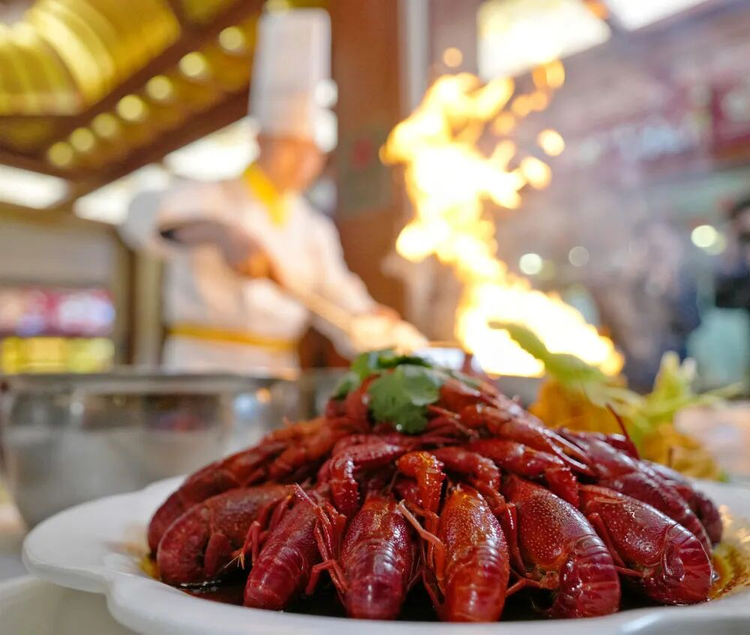 当产业链条不断延伸,春天的味道最终落在了百姓的舌尖与笑容里。随着早春龙虾抢鲜上市,盱眙“尅街”人头攒动,烟火气十足。“不仅要做好味道,更要造‘场景’。”一位餐饮负责人信心满满地表示。正是凭借这种敏锐的市场嗅觉,盱眙餐饮界正主动借力“苏超”“淮超”等赛事IP,将单纯的“吃虾”升级为“文旅+餐饮”的消费新体验,合力将盱眙龙虾这块金字招牌擦得更亮。与此同时,这股创新势头也延伸到了更广阔的市场——在上海“华食展”上,盱眙龙虾惊艳亮相,成功从县域特色小吃跃升为世界级的“中国美食IP”。