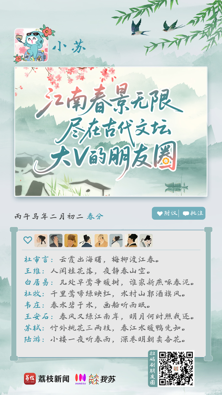 春分已至,春天已过半。你的相册里收集了多少张江南的春天?回望千年,无数文人墨客曾在这片土地留下足迹,也留下了一首首传诵千古的春日诗篇。