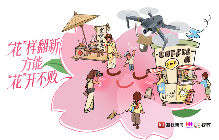今年的赏花热潮,呈现出启动早、人气旺、玩法新的鲜明特点。科技为赏花经济注入更多“智慧因子”,南京林业大学联合50余位专家发布《中国樱花预报2026》,结合花期模型与气象信息精准预测最佳观赏期;成都新津天府农业博览园引进彩色油菜花新品种,将传统花期延长至百天以上。以花为媒,各地以休闲农业为载体,推动农文旅深度融合,把火锅、咖啡、文创、手作、采摘等业态嵌入花田场景,让赏花升级为沉浸式消费体验。与此同时,不少城市深耕服务细节,着力破解“最后一公里”痛点。无锡警方加强热门区域巡逻值守,守护提升游客体验;杭州太子湾公园推行提前预约分时段入园,保障游览品质;武汉东湖樱花园开通专属赏花公交专线,无缝衔接地铁与景区。一朵花的吸引力,靠众多个细节来成全。