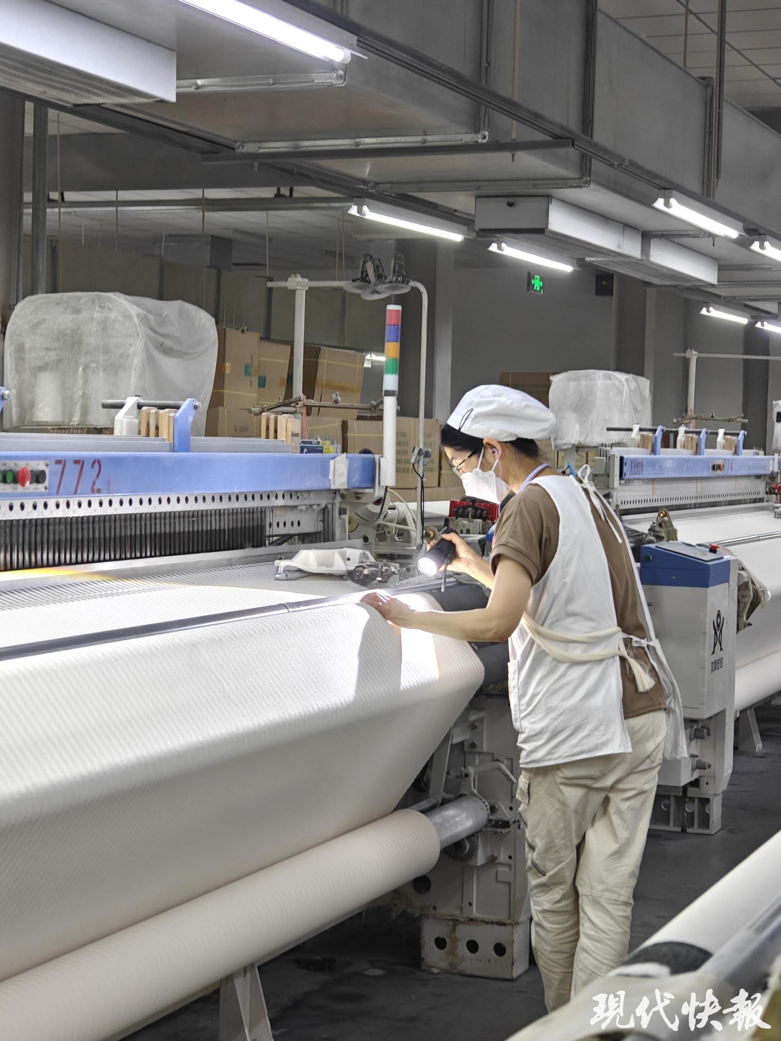 现代快报讯(记者徐梦云文/摄)机器轰鸣的伊宁县纺织产业园内,车间里纱线飞旋、机声阵阵,一派繁忙的生产景象。3月29日,挡车工热阿西达木·马木提正在熟练地操作着机器,她告诉现代快报记者,这是她在厂里工作的第三年,现在月收入在8000元到1万元。“我之前在新源县的镇上自己开蛋糕店,收入不太高,来这里之后挣的钱还可以,能管家里、管孩子、管父母,现在已经买车了,觉得很有成就感。”