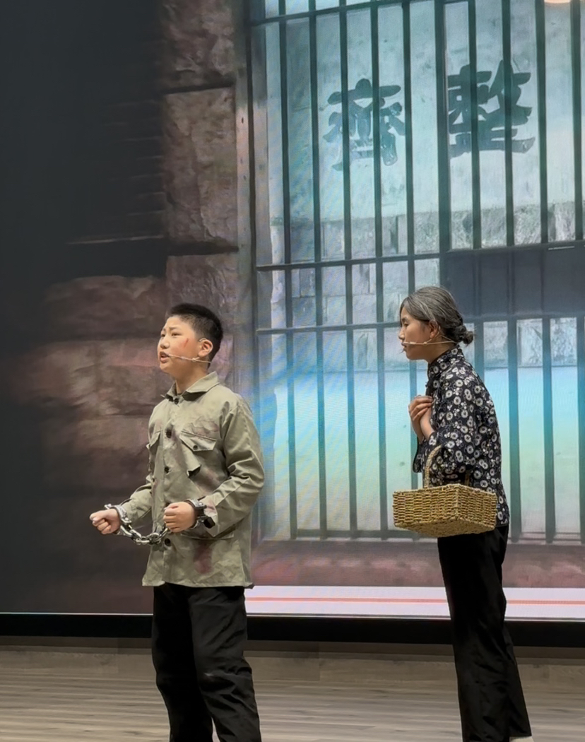 “我在扮演邓中夏烈士的过程中,查找了很多关于烈士的资料,被他立志报国、不怕牺牲的精神深深打动。为了讲好烈士故事,我和小伙伴们利用午自习时间多次排练,用了整整三个星期打磨作品,希望把烈士的故事讲给更多同龄人听。”邓中夏烈士的扮演者,南外河西一附小六年级学生朱堉航告诉记者。