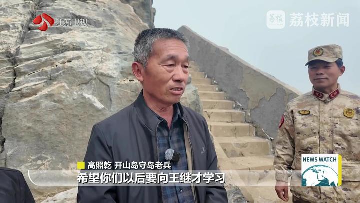 开山岛守岛老兵高照乾说:“希望你们要向王继才学习,向以前的老兵学习,守好岛,为祖国站好岗、放好哨!”