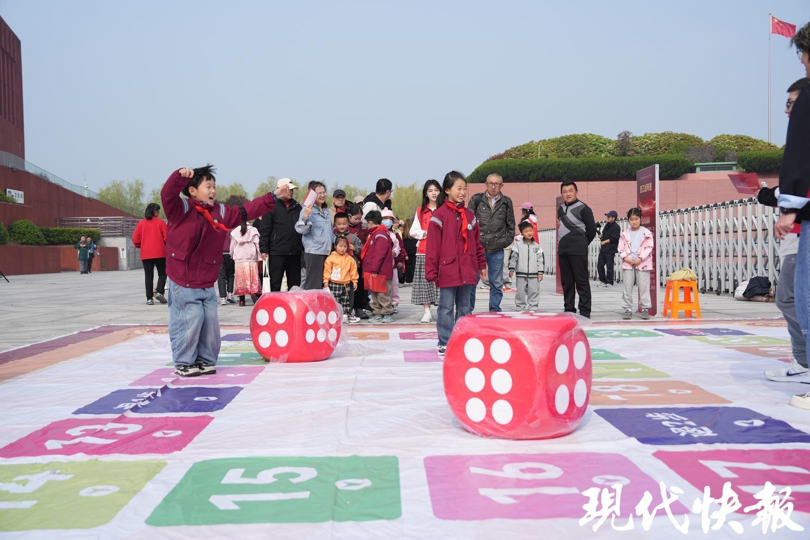 南京的渡江胜利纪念馆也热闹非凡。江苏、浙江、上海、安徽四地的14家渡江战役纪念馆(地)合作联盟单位,以及南京地区部分红色场馆和社会团体,共设近20个红色科普、文博宣传与文创展位。字影追踪战、冰壶突围记、沙包投掷战……孩子们玩得不亦乐乎。