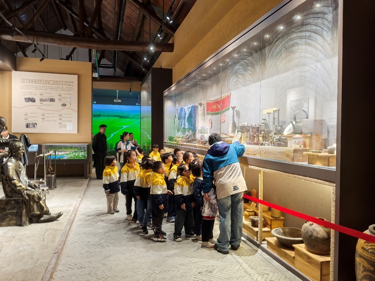 在运营中,园区坚持“产品为根基、体验为灵魂”,推动文旅融合以更丰富的姿态呈现,构建“可触、可感、可参与”的体验生态。乡愁馆采用“历史脉络+场景体验+数字赋能”的展陈模式,将古老农具、生活器物融入市井生活场景,让厚重的乡愁转化为可触摸、可共鸣的情感体验;状元塔深挖“耕读传家”文化,结合科举文化与地方先贤故事打造特色展示空间,成为传承文脉、激励学子的教育阵地。重点打造“场地+场景+科普+体验”全流程研学课程,在开心菜园、稻田花海等真实场景中,开展春耕、秋收、非遗手作等实践活动,让孩子们化身“小小农学家”,在实践中感悟农耕文化。目前,园区年均接待各类主题教育及研学团队超30个,成为广受认可的校外课堂。